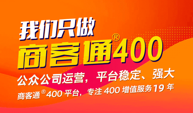 商客通®400平台是业内公认的专业平台,20余载运营,50万企业用户见证,安全稳定、增值功能强大,以公司实力支撑为企业赢得更多商机护航!